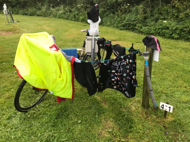 I get to just outside Oakhampton and google a campsite. 2.5 miles through Oakhampton and very much uphill. A very warm welcome from Tim. A special low rate for cyclists. Then best of all, he opens the boiler house for me to dry all my kit. Hurray!!!!