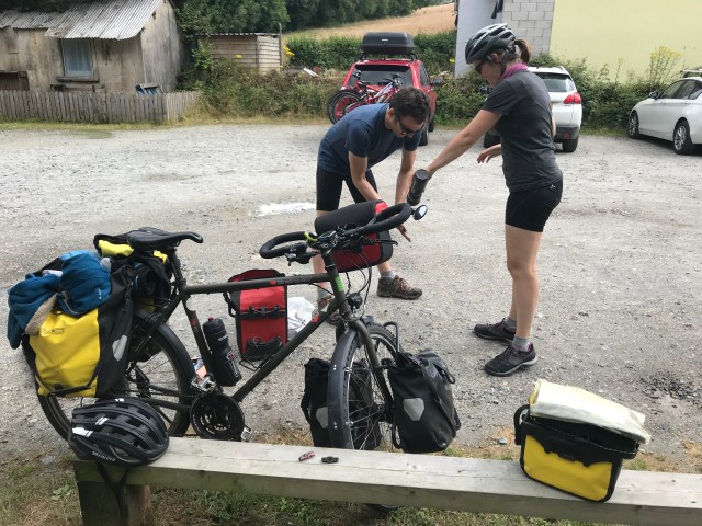 Then it got weird. After 5 or 6 miles all ok, Genevieve suddenly got a speed type wobble. Stopped and tried again same thing, very unsettling. Took all the panniers off and tried again, same thing. Weird as I packed same way as previously and covered lots of miles no issues. Redistributed load tried again and better, but still occasional wobble without warning. It made me very careful on the down hills.