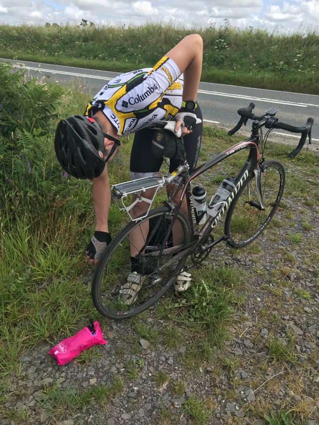 Then in Davidstow miles from anywhere I saw a cyclist on side of the road. “Are you ok?” Answer “no”. Phil a young end to ender had broken a spoke and wheel was totally out of true. I find my pliers and by tightening and loosening other spokes we got it so he could ride it to get it repaired.