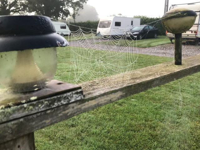 On opening the tent it was very misty and all I could see was spiders webs all over the grass glistening with the moisture on them. Im now in the routine of packing and breakfast, everything has an order and everything has it’s place when packing. When I went to light my stove it wouldn’t spark ( I know Tall Steve says I should have matches or a lighter with me, I do have them now!). A man was sitting outside his camper van. I go over and introduce my self and meet Marcel from Holland ( He was very sociable). We discussed my route and cycling in Holland. He has a Brompton with him but prefers the walking, we are not set up for cycling he says. I told him I preferred the cycling in Holland to the walking, fairs fair.