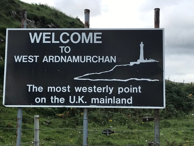 After landing I say goodbye as I’m turning left to Ardnermurchan lighthouse. In my mind it was only a mile and a half from the ferry. 2 miles in I see the sign for the lighthouse6 miles, gulp! It is very up and down and road conditions are poor so you can’t make the most of the downhill to help with the uphill. Gradients are all 8 or 9 percent up, hard work. It is incredibly wild and desolate and I feel totally on my own. I love it, with hundreds of meadow pippets and a stonechat to keep me company and sheep. Very different from the Eastern most point.
