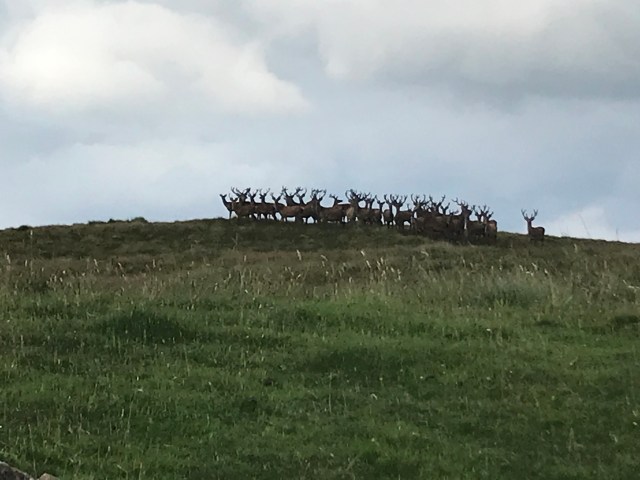 2 miles later I have stopped, not just because of the steepness of the hill but because 20+ red deer have appeared on the horizon. Rob rides up on a Genesis. A good day for Genesis bikes. He is touring but credit card style so only a very small seat pack on his bike. He knows the area and tells me it is 20 very tough miles to Salen but an incredibly beautiful ride. He is spot on on both accounts.