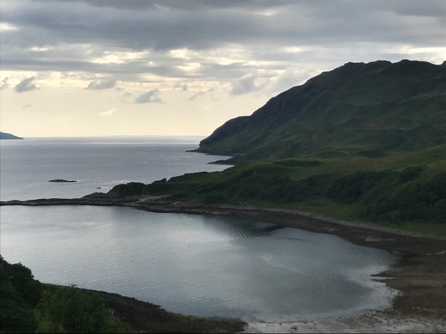 Mountainous views, sea views,forest the route has it all. It also has hills and more hills. It starts to rain again. Thinking back now I don’t think I drank enough on this part of the ride. 2 miles from Salen and I have bonked!!! Legs feel weak and my vision is a little all over the place. A quick drink, one more climb and I make it to a hotel/ bar in Salen. It has stunning views across the sea and surrounding hills. I order chicken and haggis, it is beautifully presented and incredibly tasty but I could have eaten three of them. The beer goes down well though. Some guys at the bar are talking Merlin engines and about Guy Martin. I share my experience of the Royal Enfield earlier in this trip. The sticky toffee pudding is sensational.